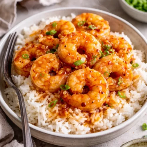 Serve the shrimp over a bed of fluffy jasmine or basmati rice to catch the sticky sauce, or toss with lightly buttered noodles for a comforting food hug. For a lighter plate, spoon the shrimp atop a crisp salad with cucumber ribbons and avocado slices for contrast. Pair with a chilled glass of sauvignon blanc or a fizzy citrus mocktail. Picture: warm steam rising from a bowl, the sauce glistening on each shrimp, forkfuls shared around a small table with soft conversation and the clink of glasses.