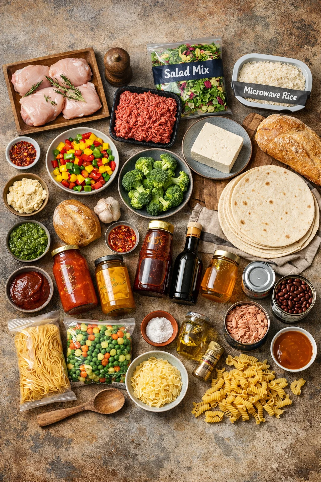 - Keep one shortcut carb around: microwave rice, tortillas, pasta, or crusty bread.