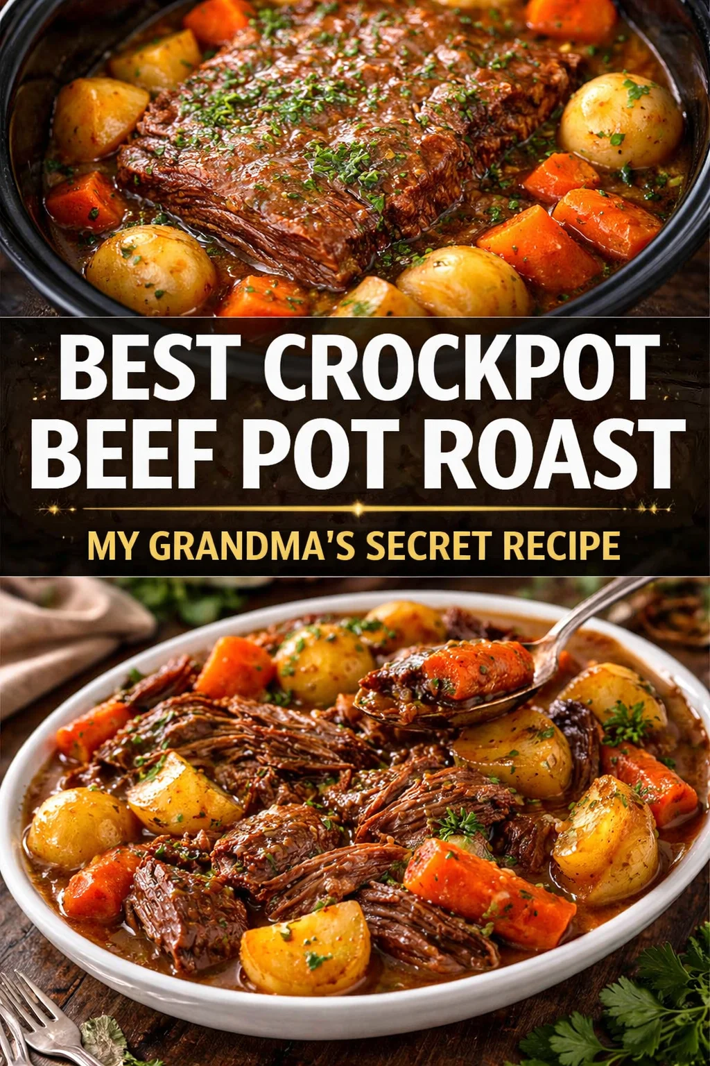 The first time I slid a tangle of browned chuck roast, glossy carrots, and a handful of rosemary into my slow cooker, I remember the quiet magic that followed — the house filling with deep, savory perfume, the little plumes of steam that told me dinner was becoming something more than a meal. This Best Crockpot Beef Pot Roast is that slow-brewed comfort: tender meat that falls apart with a fork, a gravy that clings to mashed potatoes, and the kind of warmth that makes everyone linger at the table. If you love a simple dinner that feels like a homemade dish passed down through generations, this easy meal will become a family favorite. For another hearty slow-cooked beef idea, I sometimes turn to a rich crockpot beef stroganoff when guests want something creamy and comforting.