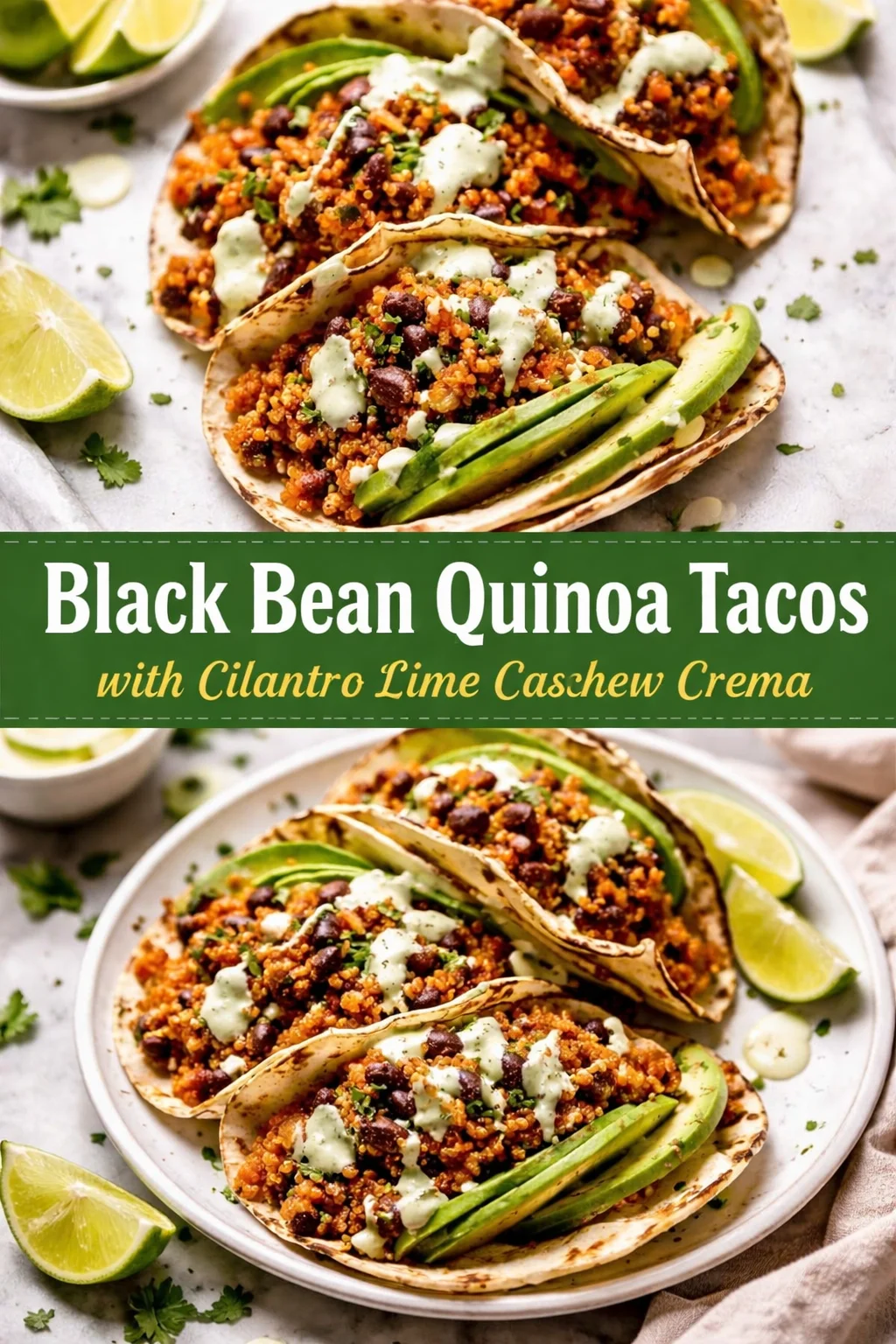 Wrapping up the vibrant and fulfilling Black Bean Quinoa Tacos with Cilantro Lime Cashew Crema brings a sense of joy and accomplishment. Not just nourishing your body, this recipe nourishes relationships and offers a deliciously satisfying way to gather around the dinner table. So grab your favorite people, add your personal touch to these tacos, and make memories filled with laughter, love, and really incredible food. Try this dish, share it, and invite it into your family traditions—it’s bound to become a beloved staple!