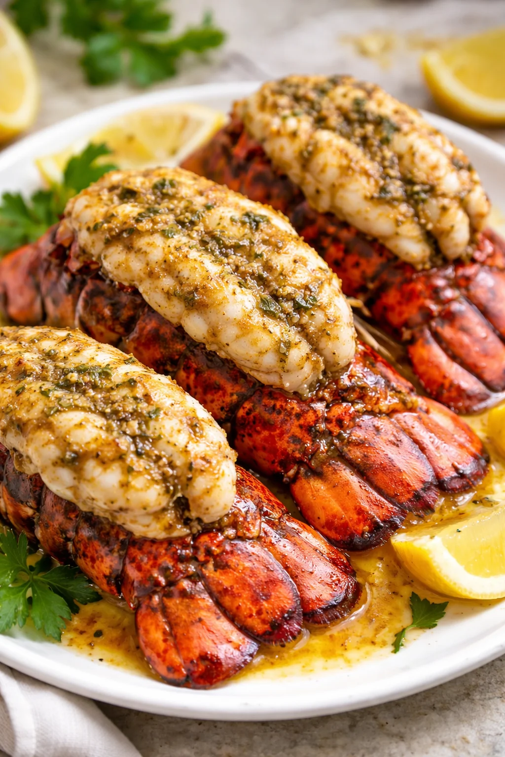 - 4 lobster tails (6–8 ounces each) — fresh or thawed frozen, split down the top shell.