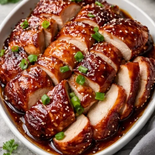 Imagine a platter of glossy slices piled next to fragrant jasmine rice, ribbons of quick-pickled cucumber, and a bowl of steamed bok choy drizzled with toasted sesame oil. Or, for a casual night, shove those slices into warm steamed buns with cilantro and spicy mayo for handheld joy. Pair with a light lager, jasmine tea, or an off-dry Riesling for an evening that feels both simple and celebratory. This dish works for cozy dinners, birthday nights, or small gatherings where comforting food meets festive presentation.