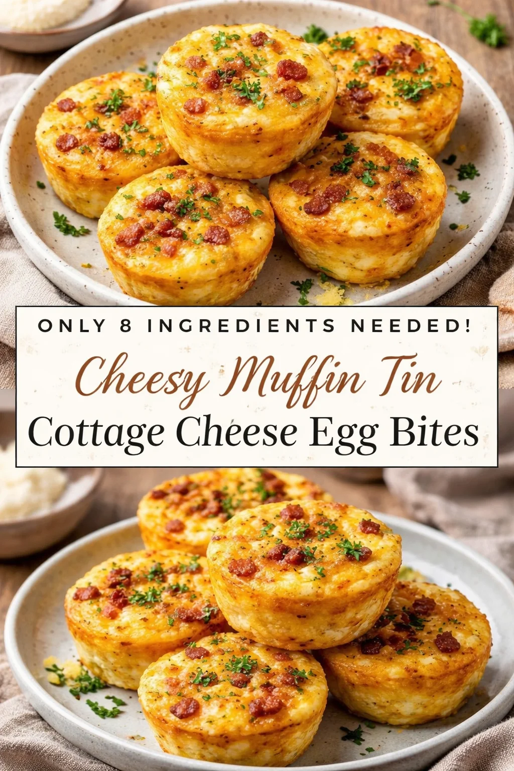 These Cheesy Muffin Tin Cottage Cheese Egg Bites are the kind of recipe that becomes part of your ritual—the quick weeknight rescue, the brunch that makes guests smile, the lunchbox surprise that sparks joy. They’re practical, comforting, and endlessly adaptable, a recipe that reminds you cooking can be loving and easy at the same time. Try them this week, tweak them to your tastes, and let them become a small, golden comfort in your kitchen. Share them with someone you love and watch how a simple bite can brighten a day.