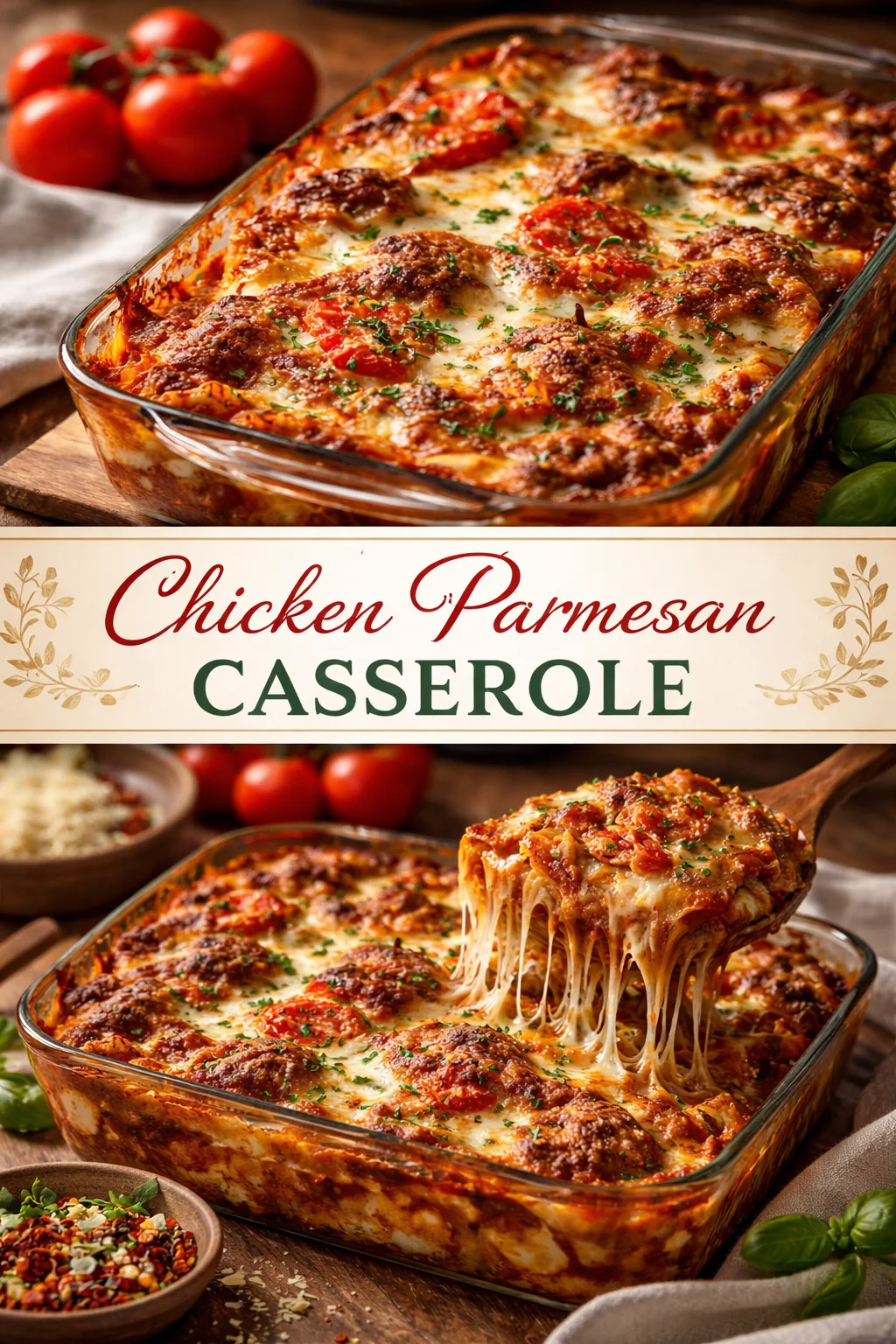 The moment that warm, bubbling pan slides from the oven and the scent of tomato, garlic, and melted cheese fills the room, everything else slows down — that is the magic of Chicken Parmesan Casserole. I still remember the night my kitchen felt like a small Italian trattoria: my daughter humming, my partner carving a crusty loaf, and us leaning over a steaming dish that tasted like the kind of comfort only home can make. If you love simple casseroles that feed both body and soul, you might also enjoy this 3-step chicken rice casserole, another family favorite that proves great meals can be easy.