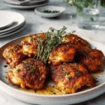 Arrange in a Baking Dish: Place the thighs skin-side up in a baking dish. Make sure they’re not overcrowded — this ensures they roast instead of steam.