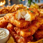 With its crunchy exterior and tender fish within, Crispy Beer Battered Fish is more than just a meal—it’s a delightful experience that brings joy to the table. Whether it becomes the centerpiece of a cherished family gathering or a simple weeknight treat, it’s sure to create lasting memories. So grab your apron and your favorite beer, gather your loved ones, and make this comforting classic today! Share your results, and let the aroma of frying fish fill your home with comfort and joy.