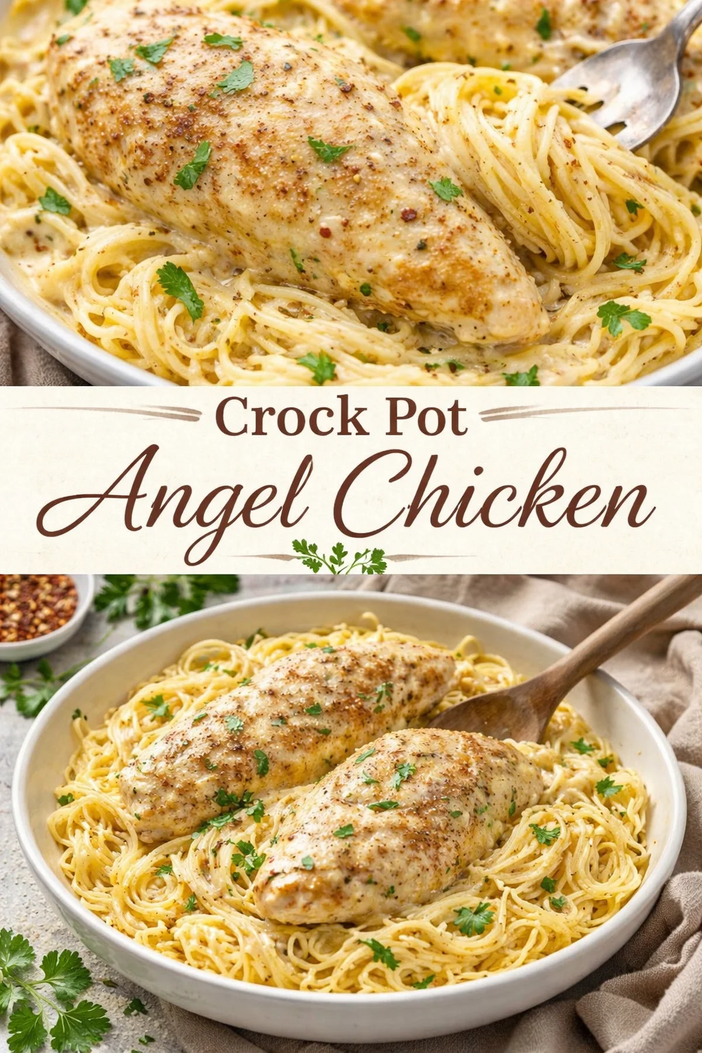 Crock Pot Angel Chicken is a gentle, soulful dish that fits into so many moments: a hurried weeknight, a comforting weekend, a small celebration, or a shared meal that becomes a memory. It’s forgiving, adaptable, and reliably delicious — everything a family favorite should be. Try it tonight, tweak it to your taste, and let it become one of those recipes you reach for when you want to feed both body and heart. If this chicken becomes a tradition at your table, please come back and tell the story — I love hearing how recipes travel and transform.