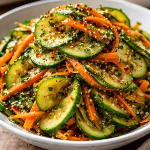 This Cucumber Carrot Salad (15 Minutes, Big Crunch!) is a little bowl of joy — fast, forgiving, and endlessly adaptable. It’s the kind of recipe that fits into weeknight chaos, weekend celebrations, and quiet lunches alike. Give it a try tonight, and let the crisp textures and bright flavors remind you why the simplest dishes often become the most beloved. Share it with someone you care about, tuck it into your regular rotation, and enjoy the sound of that satisfying crunch.