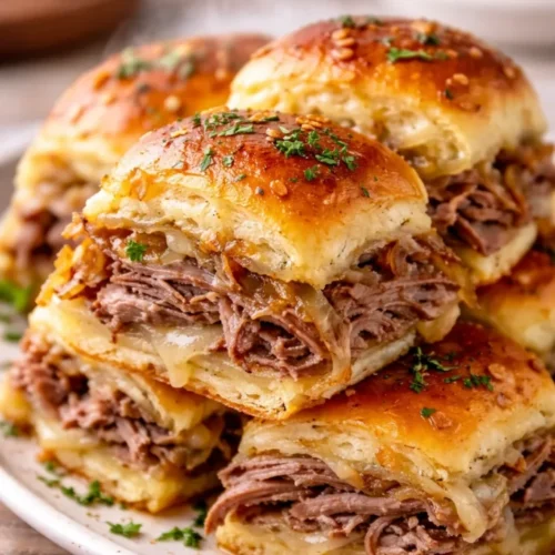 - Serve with au jus: Pour the au jus into small dipping bowls and invite everyone to dunk. These sliders are best eaten warm and a little messy — exactly how memories are made.