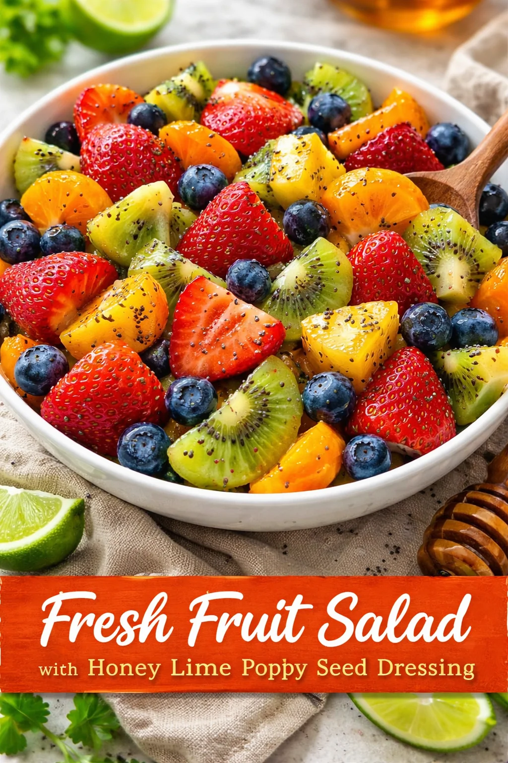 A bright, refreshing fruit salad tossed in a sweet-tangy Honey Lime Poppy Seed Dressing, perfect for any occasion.
