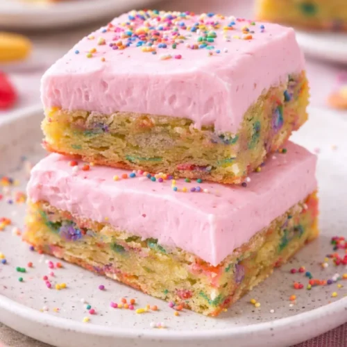 Substitutions: Swap half the all-purpose flour with whole wheat pastry flour for a slightly nuttier, healthier option; use coconut oil/vegan butter for dairy-free versions; reduce sugar by 1/4 cup if you prefer a less sweet, more balanced bar. For a festive meal vibe, fold sprinkles or citrus zest into the frosting.