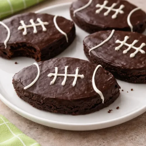 There is a quiet joy in pulling a pan of Fudgy Football Brownies from the oven—the way the kitchen fills with chocolate, the little thrill as you draw the icing laces, and the smiles when everyone takes that first bite. This recipe is a simple celebration of comfort and togetherness, perfect for making memories over a game or a cozy night in. If you want to compare versions or get inspired by a classic take, I like keeping a link handy to the Fudgy Football Brownies Recipe – Better Homes & Gardens for extra ideas. Try it, tweak it, and make it part of your favorite traditions—then tell me how you dressed yours up.