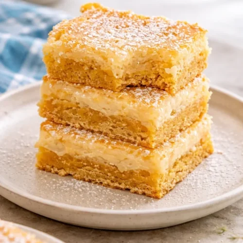 Gooey Butter Cake is comfort baked into a pan — a nostalgic, indulgent treat that feels like family. It’s forgiving, quick to put together, and endlessly adaptable, inviting you to make it your own with seasonal twists or lighter swaps. Pull it from the oven, call everyone to the table, and watch how a simple slice brings smiles and conversation. Try it tonight, share it with someone you love, and keep a little piece of warmth in the freezer for when you need a cozy moment.