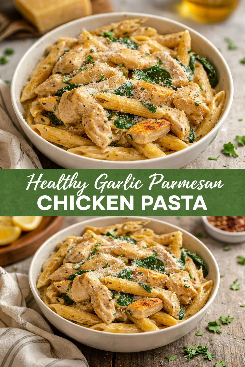 Healthy Garlic Parmesan Chicken Pasta