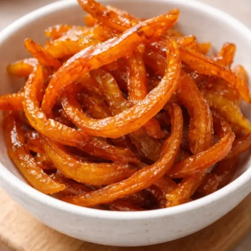 There is a thin, fragrant ribbon of memory that always pulls me back to winter kitchens: the bright, warming scent of simmering citrus and sugar. This is the soul of my Candied Orange Peels recipe — a homemade recipe that turns the humble rind into an indulgent treat, glossy and slightly chewy, smelling like holiday lights and family stories. In the first hundred words I want you to feel that steam on the stove and hear the quiet clink of spoons. If you love citrus-forward comfort foods, you might find inspiration in my take on Crispy Orange Chicken for a heartier, comforting dinner twist: crispy orange chicken.