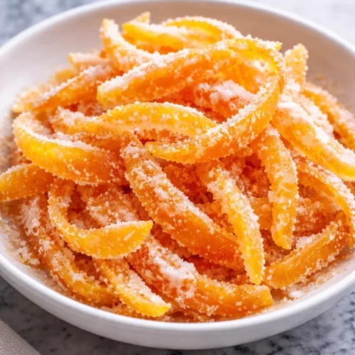 There are smells that carry you home: the bright, clean citrus of oranges simmering in sugar, the faint caramel whisper as peels transform, and the cozy clink of a jar being closed for the first time. This Candied Orange Peel Recipe sits on my shelf like a jar of small miracles — an indulgent treat that tastes like childhood holidays and slow afternoons. In the first 100 words you already have the promise: sweet, slightly bitter, chewy strips of orange peel that melt into tea, top desserts, or live happily in your palm as a quick, comforting snack. If you love handmade pantry delights, you might also enjoy exploring our collection of family recipes for more cozy favorites.