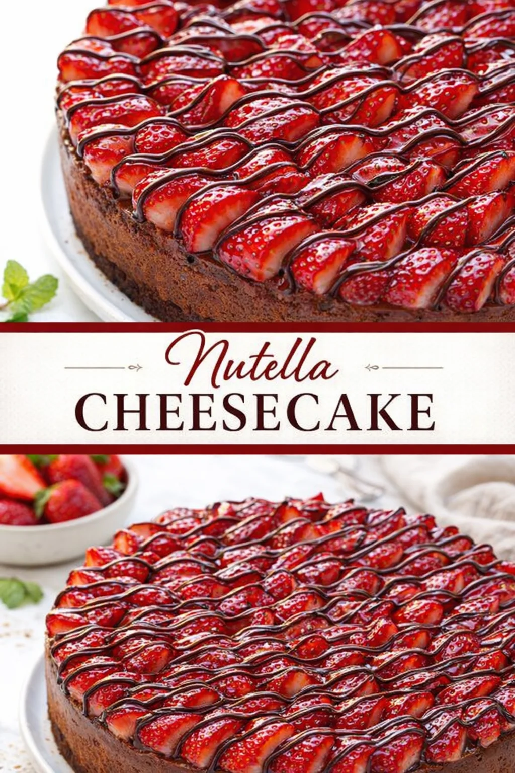 Picture this: warm, golden sunlight streaming through the kitchen window as your loved ones gather around the table, laughter filling the air. Serve your Nutella Cheesecake alongside fresh strawberries and a dollop of whipped cream or pair it with a scoop of vanilla ice cream—a delightful treat that captures sunshine in every bite. To complement this indulgence, a cup of rich coffee or a chilled glass of dessert wine enhances the experience wonderfully.