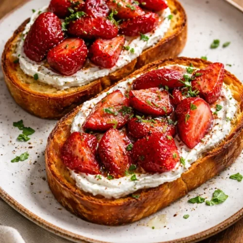 The first time I tasted Roasted Strawberry Whipped Ricotta Toast, I sat at my kitchen table while golden light pooled across my plate and a warm, jammy scent rose from the strawberries. That first forkful — airy ricotta whipped into clouds, sweet-roasted berries collapsing into sticky jewels, and bread with the tiniest crunch — felt like a hug from an old friend. Roasted Strawberry Whipped Ricotta Toast is the kind of recipe that turns ordinary mornings and last-minute gatherings into moments you remember.