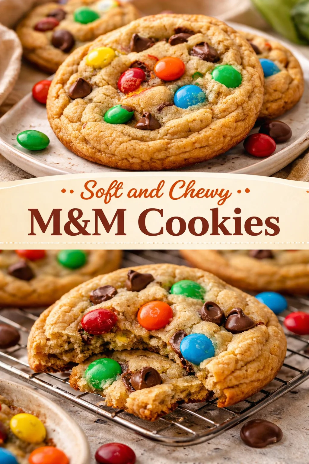 Soft and Chewy M&M Cookies are more than a recipe—they are tiny celebrations you can bake in an afternoon. They bring color, comfort, and that warm, invite-everyone-in feeling to your kitchen. Try them once and they will find a place in your rotation for birthday treats, cozy nights, and everything in between. Bake a batch, share it, and let these cookies become part of your sweet traditions. I cannot wait to hear which variation you make first—share the love and keep baking with joy.