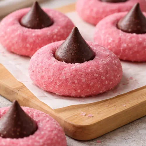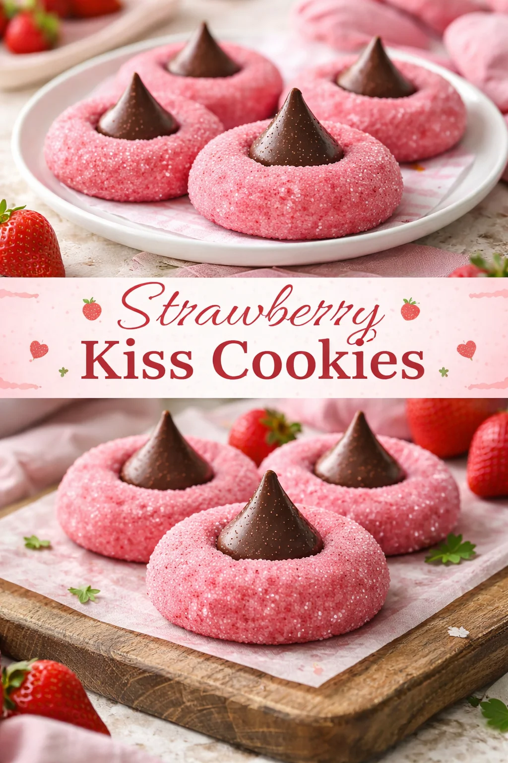 Strawberry Kiss Cookies are more than a recipe; they are a memory waiting to happen — soft, tender, and dotted with chocolatey hugs. They turn ordinary afternoons into small celebrations and make dessert tables feel like home. Try them this weekend, share them with someone who matters, and see how quickly they become a sweet little tradition in your kitchen. If you do bake a batch, I would love to hear how you made them your own.