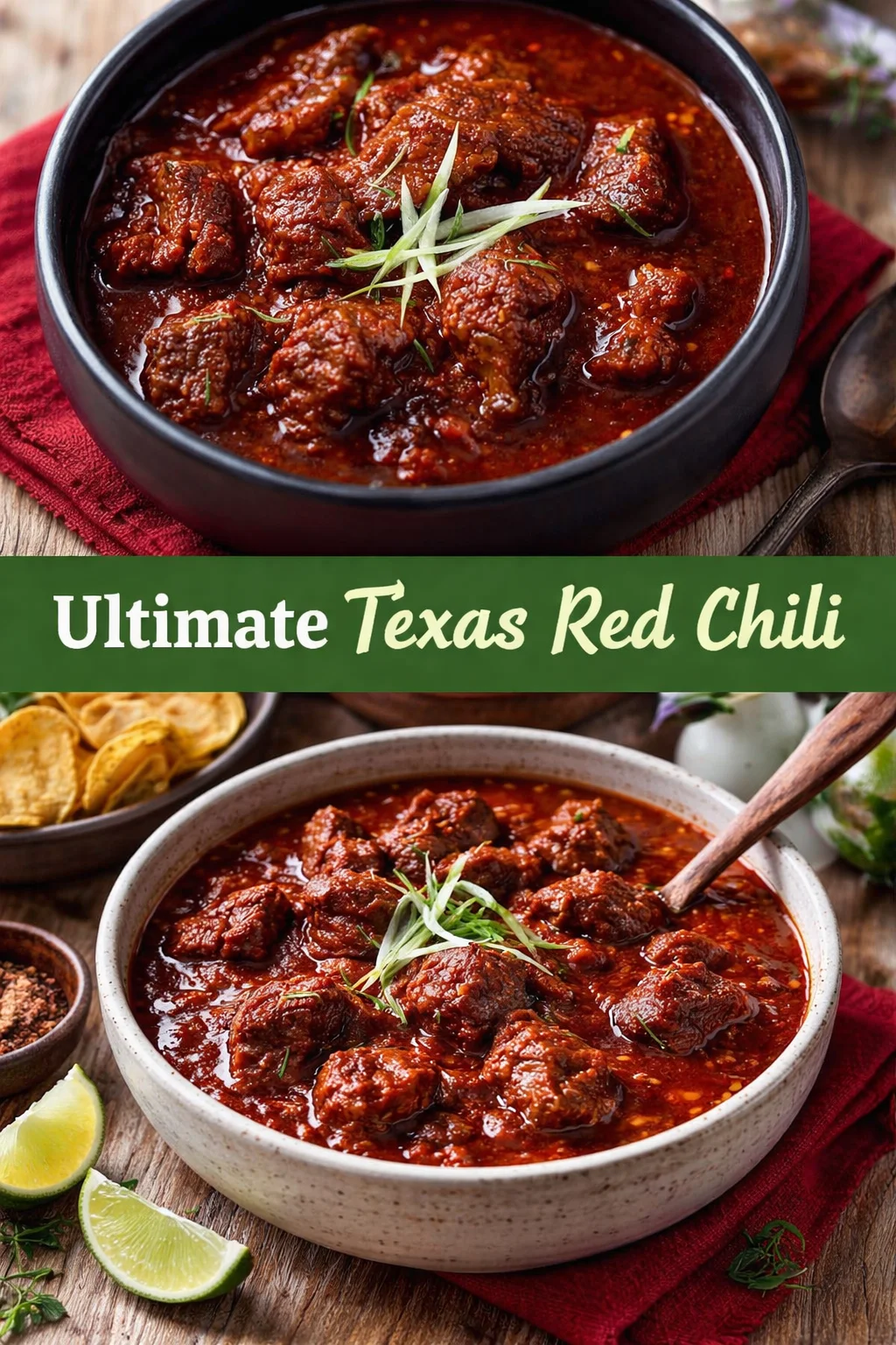 Picture this: a warm bowl of Ultimate Texas Red Chili topped with shredded cheese, a dollop of sour cream, and a sprinkle of fresh cilantro. Serve it alongside crusty bread or warm cornbread muffins, and pour some chilled beer or a mocktail to make it a true festive meal. Whether a weekend gathering or a cozy movie night, this dish pairs perfectly with laughter and cherished moments.